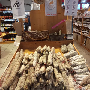 - les viandes : poulets et pintades fermiers, canards et cannettes de Barbarie, porc fermier, agneau fermier, lapin, bœuf limousin, veau